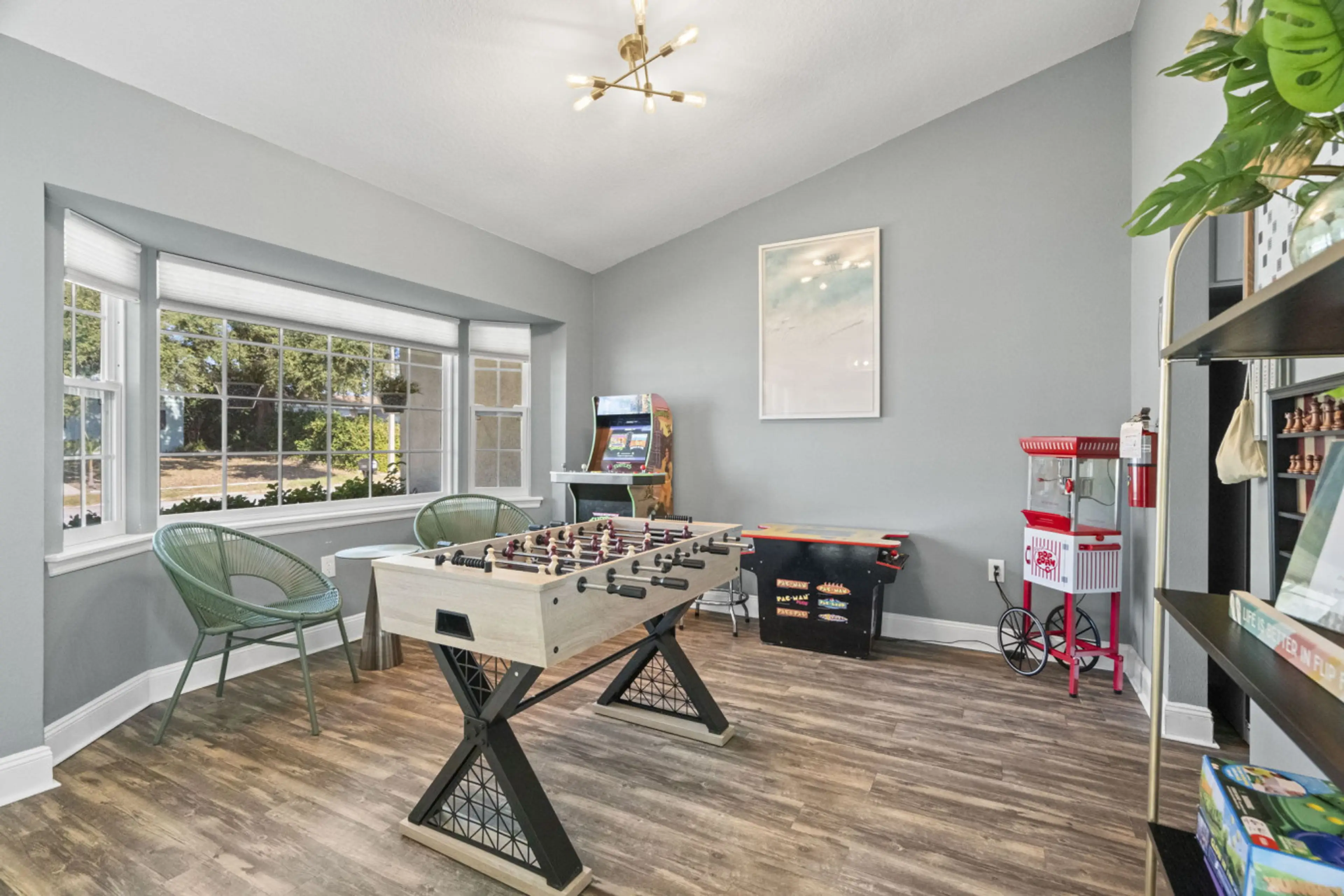 Has everything we needed. Pool, Spa, and game room. Private, clean and perfect for what we needed. Thanks!